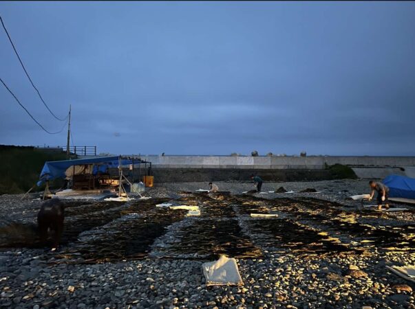 ・夜露で昆布に湿りを入れている干し場