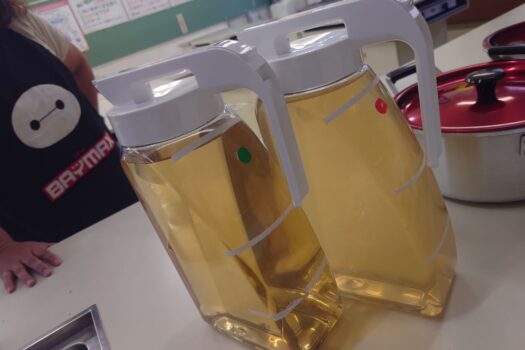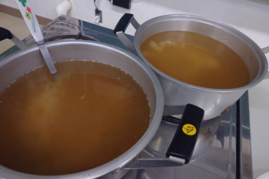 いよいよおみそ汁の飲み比べです。丁寧に採った90人分の昆布だしと合わせだしです。