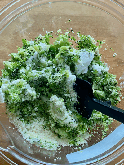 ①ブロッコリーを細かくみじん切りにしてリコッタチーズの中へパルミジャーノ