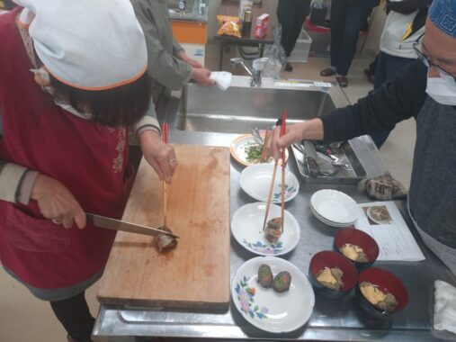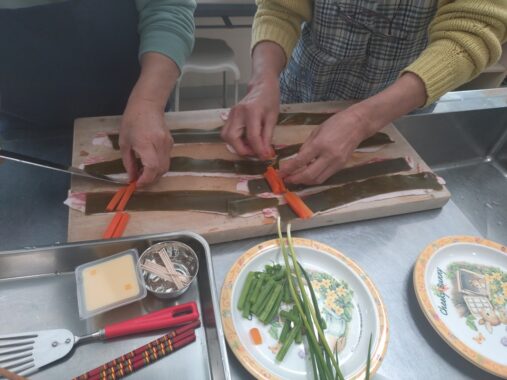 参加者の方から人参といんげんは市松に置いて巻いたらよいですねの声もあり、そうすればおせち料理の一品にもよさそうです。