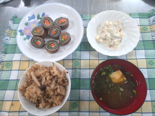 参加者の方々はチームワーク抜群、和やかな雰囲気の中手際よく調理が進みました。料理4品が完成しました。